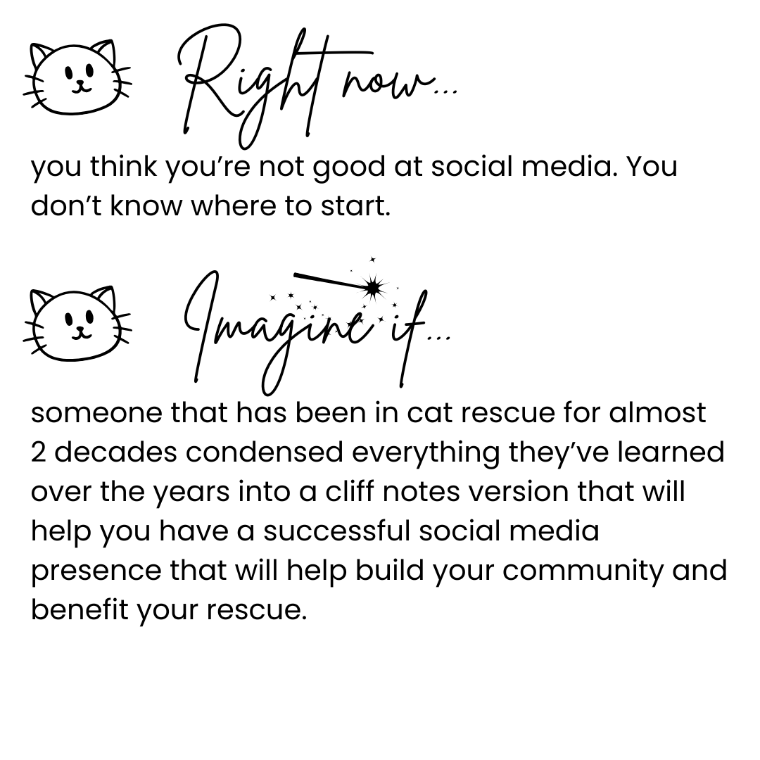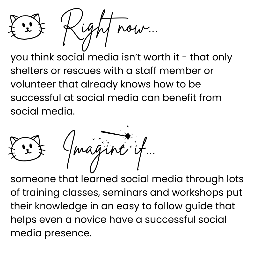 With Social Media Meowgic you won’t need to take more time away from rescue to learn the ins and outs of what works on social media.